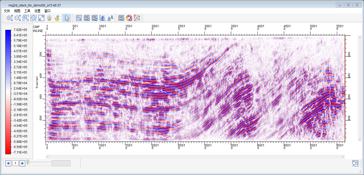国勘云平台二维常规偏移系统,可处理校正到固定面的叠前共中心点道集数据和叠加数据, 通过对观测数据的一定运算使反射界面最佳地成像。以达到以下目的:1、提高横向分辨率,使断点、尖灭点等部位清晰;2、使波场正确归位, 消除界面弯曲、倾斜等造成的各种假象;3、提高地震记录的信噪比,绕射波、倾斜界面反射波等归位,干涉带分解。在运行过程中通过作业监控和质控,保证了数据处理的质量。